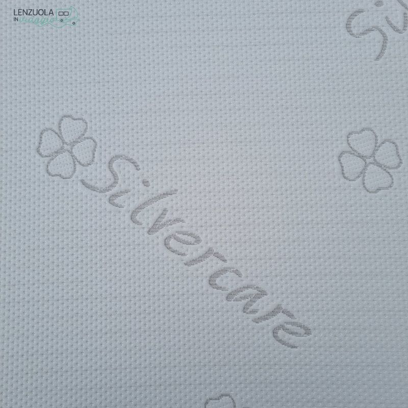 Il Tessuto Silvercare è un materiale 97% poliestere, 2% lurex, 1% argento. Questa composizione conferisce al tessuto proprietà intrinseche antibatteriche, antimicrobiche e antiodore, inibendo la proliferazione di batteri e acari della polvere e mantenendo il materasso igienico e fresco nel tempo.