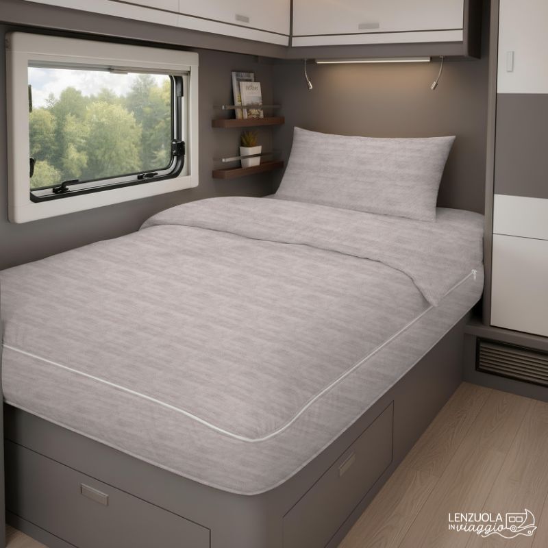 Realizziamo una gamma completa di prodotti tessili su misura per camper e barche, pensati per unire comfort, praticità e qualità. La nostra produzione comprende copripiumino prontoletto, completi lenzuola, lenzuola con angoli, lenzuola piane, federe, topper, materassi e coprimaterassi. A completamento dell’offerta, sul nostro sito trovate anche guanciali e piumini interni, selezionati per garantire il massimo del comfort anche negli spazi più compatti.
